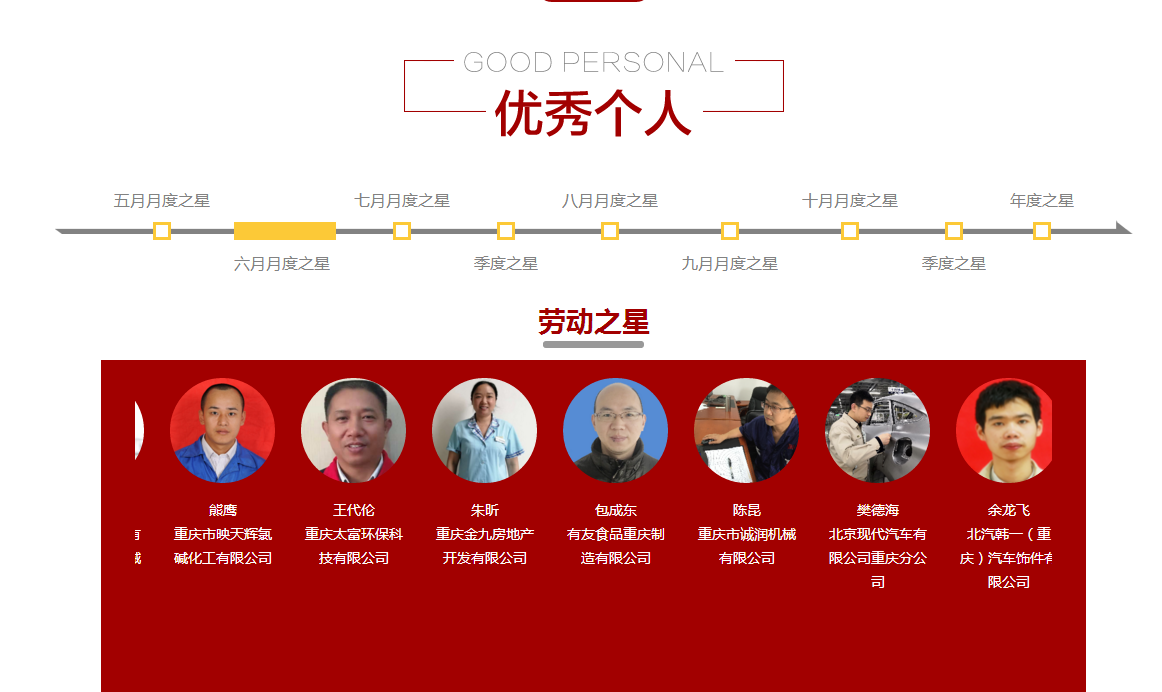 此次劳动竞赛公司工会联合生产部、质管部共同进行了评选,共评选表彰有友金牌班组5个,有友工匠6名,按照总工会此次劳动竞赛文件精神,自劳动竞赛开始至2019年10月,每月企业工会可向重庆市总工会推荐4名优秀个人,公司工会结合申报条件并征求各部门及相关领导意见,6月份从各部门推选劳动之星、创新之星、服务之星、技能之星各一名,最终环保工程师谭成林、生产部副部长包成东被重庆市总工会分别评为6月份技能之星、劳动之星。(活动相关情况可在重庆市总工会官网“重庆市网上劳动竞赛”版块查看)。