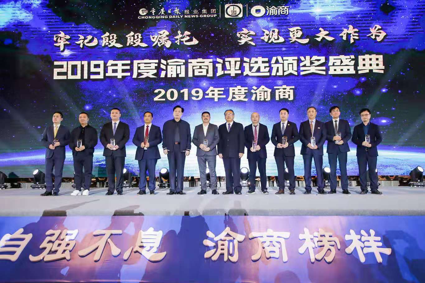 11月3日下午,由北碚区人民政府、重庆日报报业集团、重庆市总商会主办,重报都市传媒集团承办的“渝商产业合作发展交流会暨2019年度渝商、新锐渝商颁奖典礼在北碚隆重举行。作为获奖嘉宾代表,乐动买球董事长兼总经理鹿有忠在颁奖典礼上发表了获奖感言。